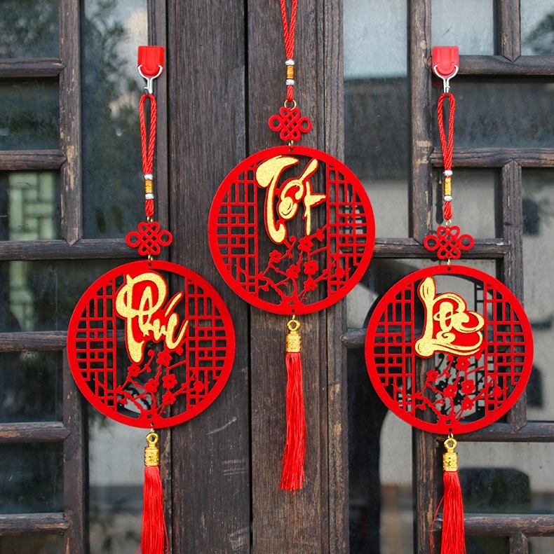 SS8097 Khánh đỏ Phúc, Lộc, Thọ Trang Trí Tết, Dây Liễng treo cửa, cây cảnh